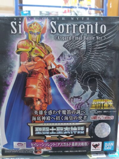 Siren Sorento torna nella serie Saint Cloth Myth EX, questa volta in versione “final Asgard battle”! La figura ha nuovi dettagli di scultura e dispone di numerose articolazioni e accessori: volti e mani intercambiabili, mantello, ali, parti per l’Object e l’armatura e una parte opzionale per il Myth Cloth EX Alpha Dubhe Siegfried (venduto separatamente).