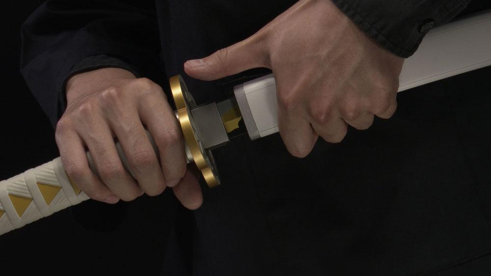 Dal successo mondiale “Kimetsu no Yaiba: Demon Slayer”, la spada Nichirin di Agatsuma Zenitsu si unisce alla serie PROPLICA di riproduzioni realistiche in scala 1/1 di oggetti di scena popolari della tua serie preferita! La prima PROPLICA a includere un fodero, include sensori che ti permettono di replicare le spettacolari scene di estrazione e riposizione della spada di Zenitsu, riproducendo battute famose, effetti sonori e musica della serie: per un totale di oltre 60 campioni sonori! E con una lunghezza di 880 mm, è a grandezza naturale.